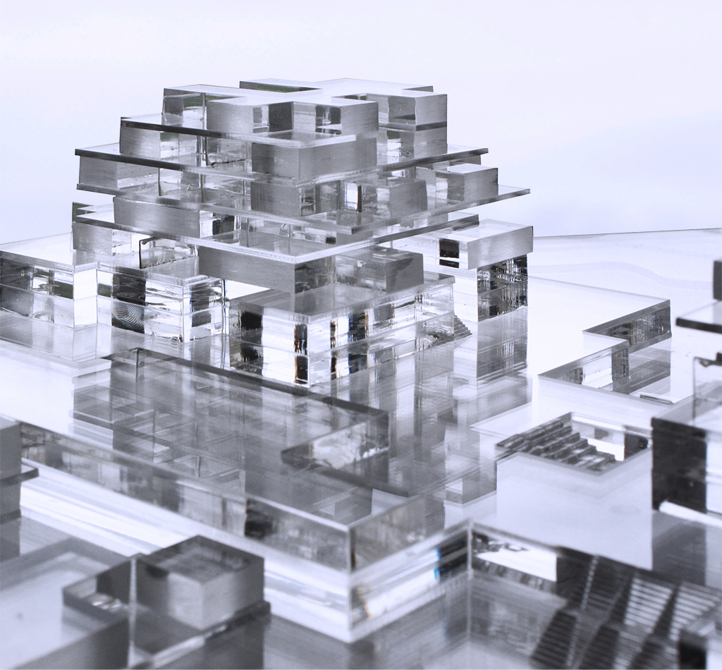 Proposal for a residential building on the Miraflores Peninsula, Córdoba. Model made of acrylic.